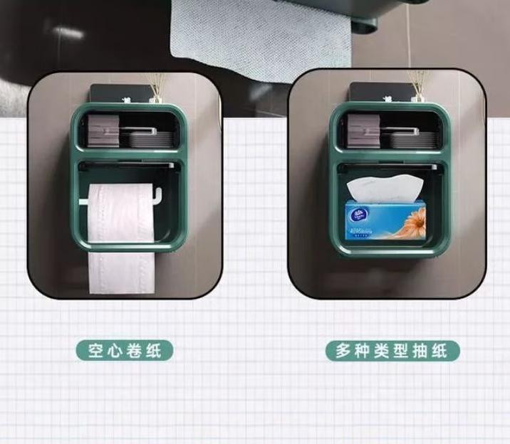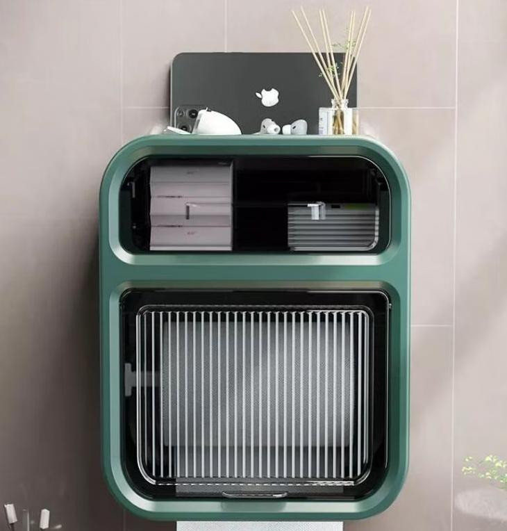 柯丽影卫生间纸巾盒厕所纸巾盒置物架免打孔厕纸盒壁挂卷纸抽纸盒绿色