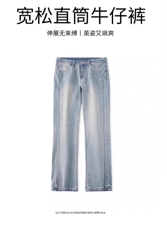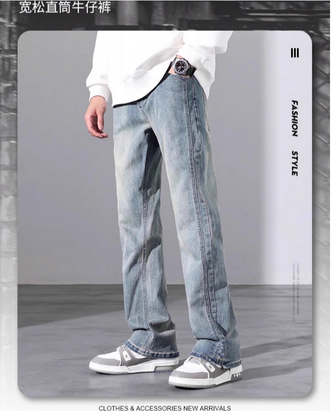 美式复古春季牛仔裤男2025新款宽松直筒潮牌裤子男春秋水洗休闲裤