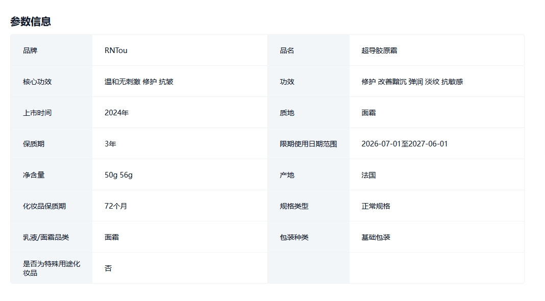 RNTOU保湿抗皱面霜修复屏障油皮抗老紧致滋润提亮去黄法国院线女的描述