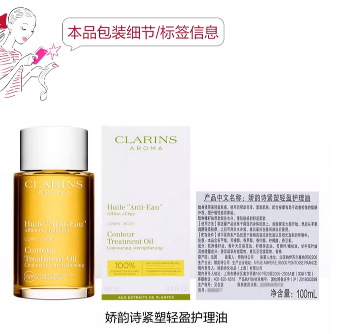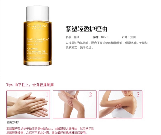 娇韵诗紧塑轻盈护理油身体按摩精华油补水保湿滋润的描述