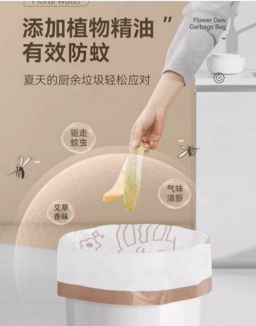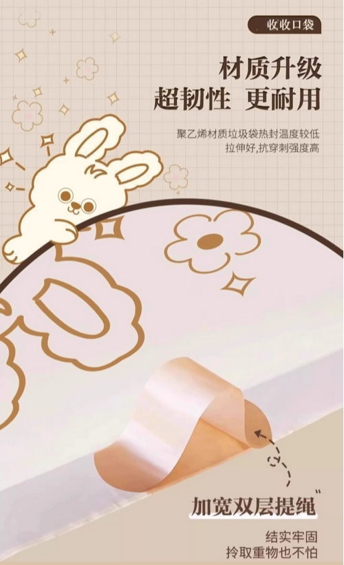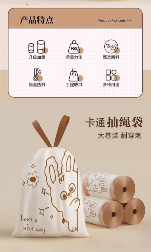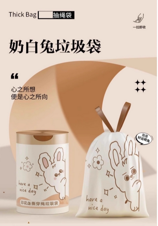 抽绳式印花垃圾袋家用加厚手提厨房宿舍学生大号塑料袋提拉收口的描述