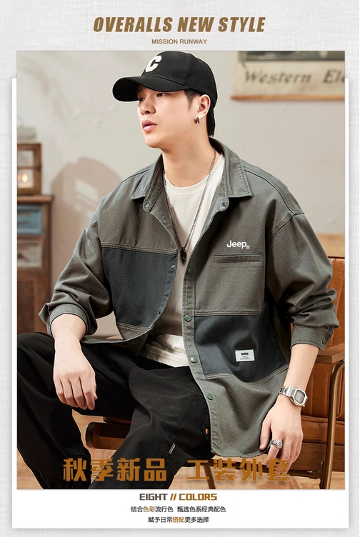 JEEP吉普纯棉牛仔衬衫男士2025新款春秋款拼色衬衣痞帅外套上衣服的描述